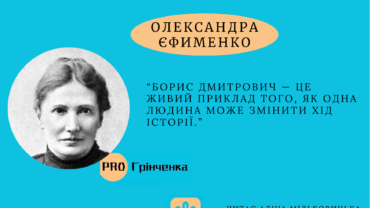 “Борис Дмитрович — це живий приклад того, як одна людина може змінити хід історії..» Одна з перших українських історикинь Олександра Єфименко, яка сприяла відродженню національної культури та історії, активно співпрацювала з Борисом Грінченком, зазначала: “Борис Дмитрович — це живий приклад того, як одна людина може змінити хід історії, пробудити народ…
