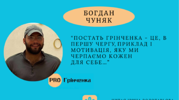 «Постать Грінченка – це, в першу чергу, приклад і мотивація, яку ми черпаємо кожен для себе…» За словами Богдана Чуняка , випускника факультету журналістики, нині воїна Збройних Сил України : «Постать Грінченка – це, в першу чергу, приклад і мотивація, яку ми черпаємо кожен для себе. Його постать особлива тим,…